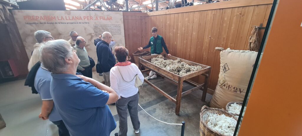 A las 12 del mediodía, hemos realizado la visita guiada a la exposición permanente «La fábrica textil» donde se muestra todo el proceso de fabricación de los tejidos de lana en el contexto original de una fábrica de principios del siglo XX.