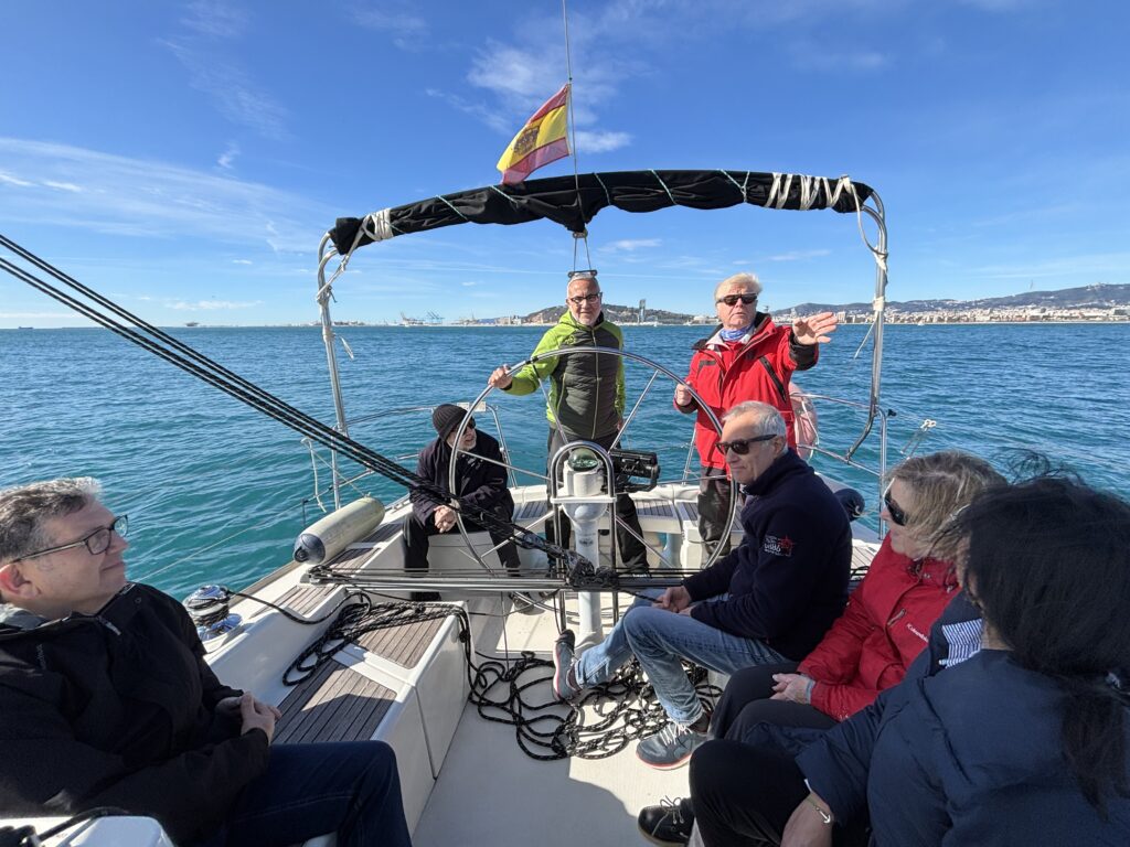 L’activitat es va iniciar amb uns 30 minuts de teoria a terra, centrats en les normes bàsiques de seguretat: com salpar correctament, els diferents rumbs de navegació i el funcionament d’un vaixell de vela en relació amb el vent. Una base necessària per afrontar la jornada amb garanties.